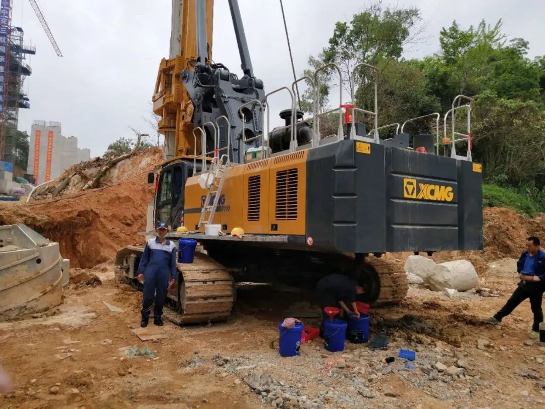 地鐵11號線金安橋站建設(shè)工地終于迎來了開工的日子,在臘月28日進(jìn)場的一臺全新徐工XR360E旋挖鉆也迎來了大展拳腳的時機(jī),這臺設(shè)備搭載著345KW的沃爾沃遍達(dá)TAD1353VE發(fā)動機(jī) 。三個星期后,將有一位‘兄弟“來和它并肩作戰(zhàn)。這個工地將迎來第二臺XR360E旋挖鉆。